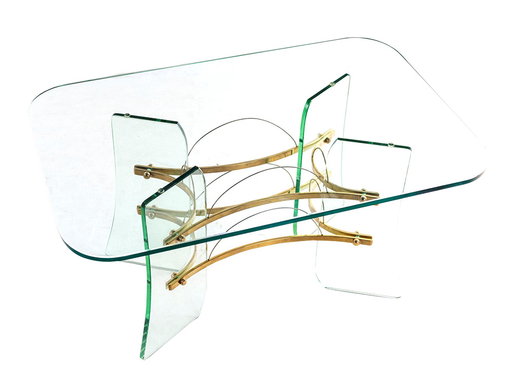 Tavolino base e piano in vetro raccordi in ottone Prod . Italiana 1950...