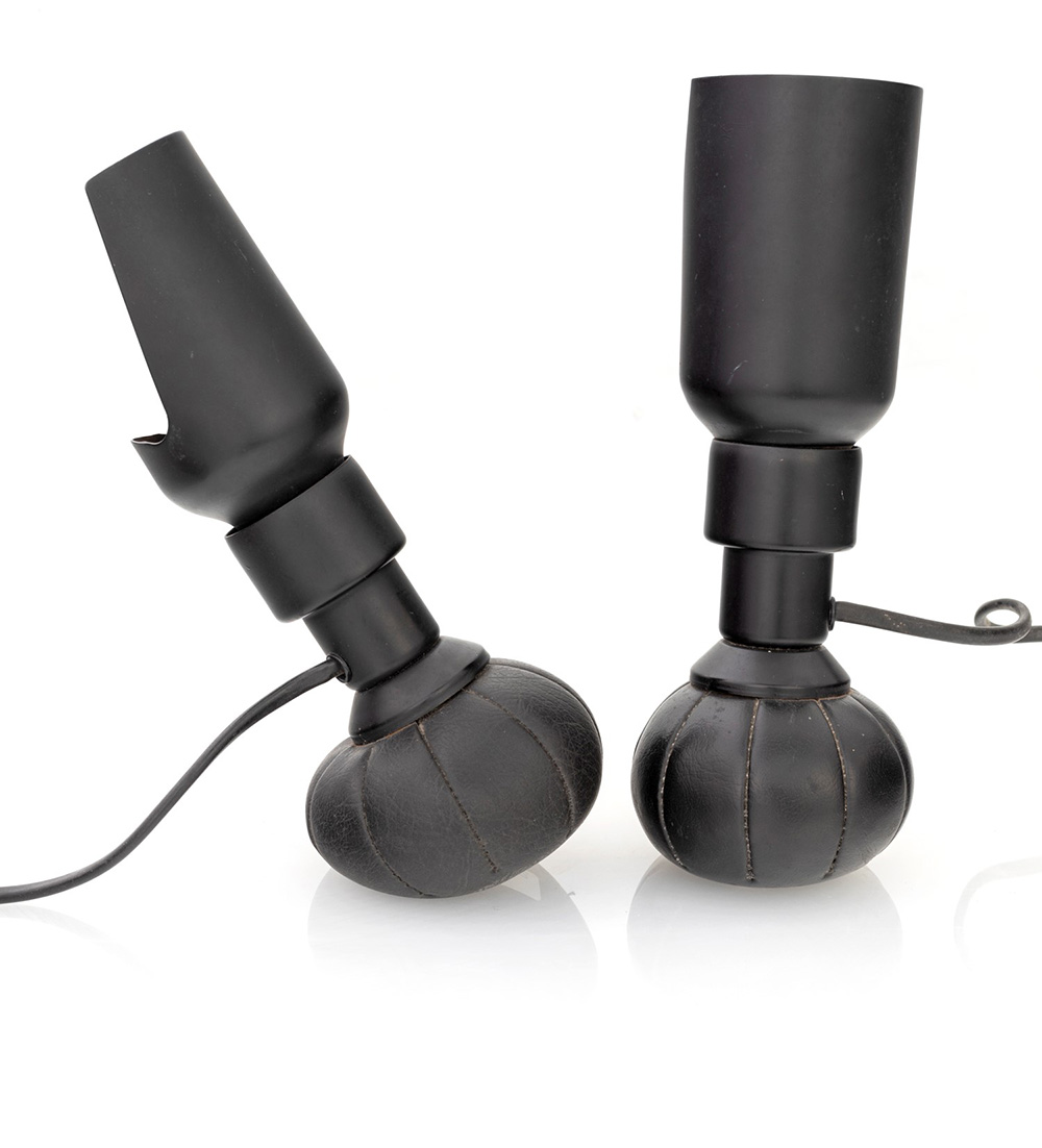 Coppia di Lampade mod.600.p base in pelle diffusore metallo laccato Prod. Artemide 1966 cm 20