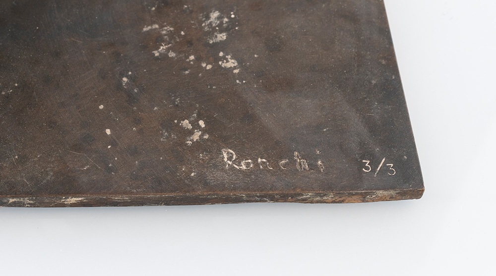Cesare Ronchi Imola 1936, Don Chisciotte Scultura in bronzo cm 31x37x15 Firma incisa "Ronchi", es. 3/3