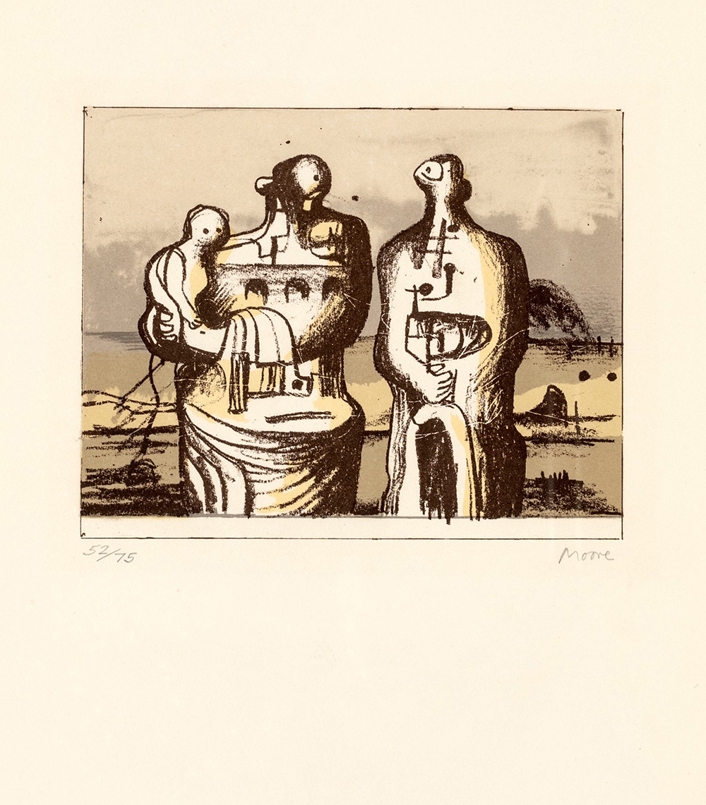 Henry Moore Castleford 1898-Much Hadham 1986, Gruppo di famiglia 1978 Litografia cm 50x40 Firma e numerazione a matita sul fronte. Es. 52/75. L'opera è stata realizzata in una tiratura complessiva di 85 esemplari, di cui 75 numerati da 1/75 a 75/75 e 10 esemplari H.C.