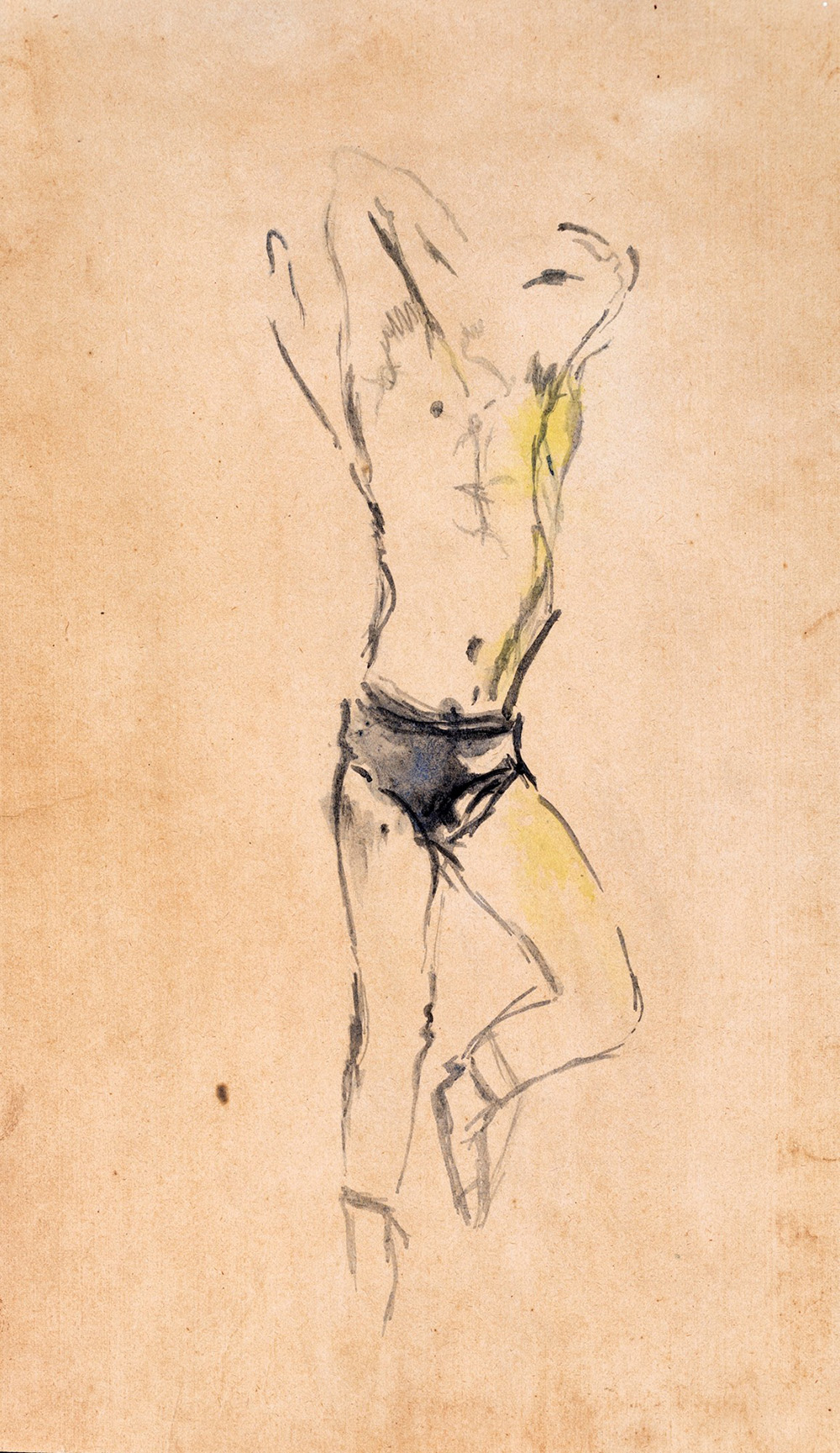 Filippo De Pisis Ferrara 1896-Milano 1956, Nudo disteso 1942 China acquarellata applicata su compensato cm 21,5x36,5 Al verso reca etichetta della Galleria Annunciata (Milano)