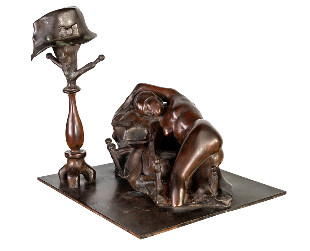 Ugo Attardi Genova 1923-Roma 2006, Figura di donna con appendiabiti. 1975/1976 Scultura in bronzo cm 36,5x41x37,5 Firma e numerazioni incise "Attardi 4/5".