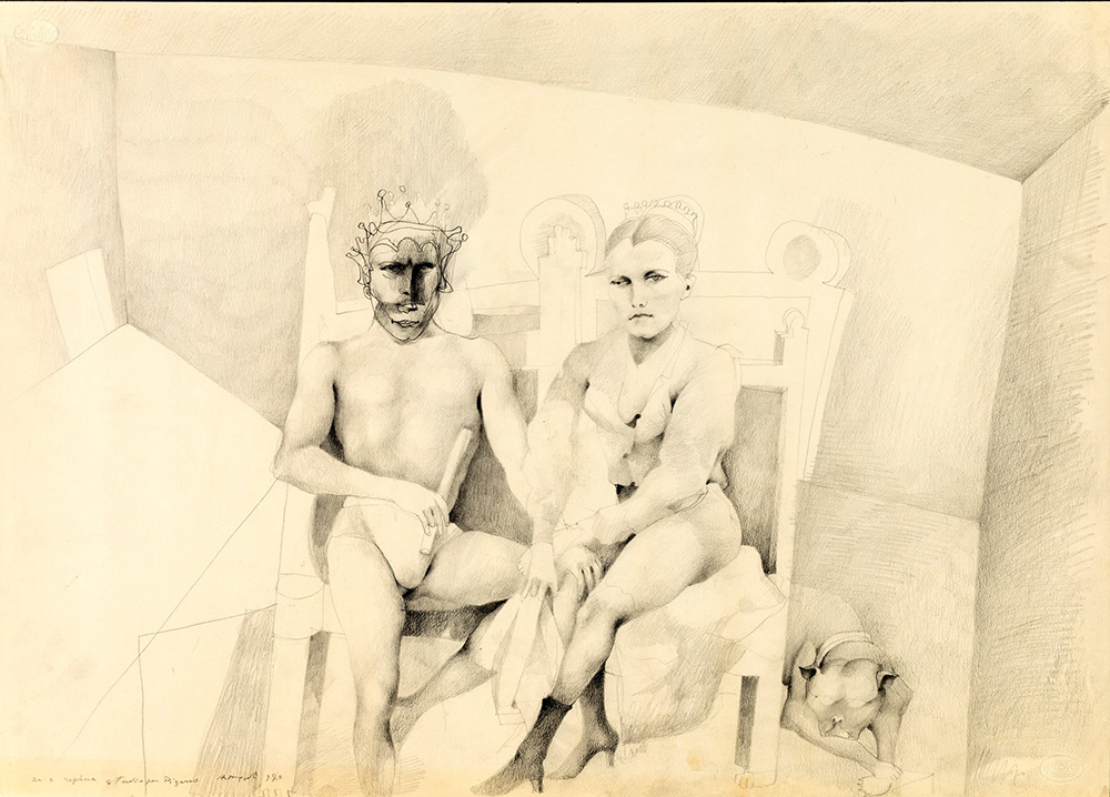 Ugo Attardi Genova 1923-Roma 2006, Il re e la regina 1970 Disegno su carta cm 50x70 Al verso reca etichetta della galleria Il Gabbiano, Roma.