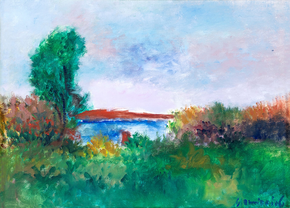 Lot 333 | Giovanni Omiccioli Roma 1901-Roma 1975, Capanna a Fregene Olio su cartone...