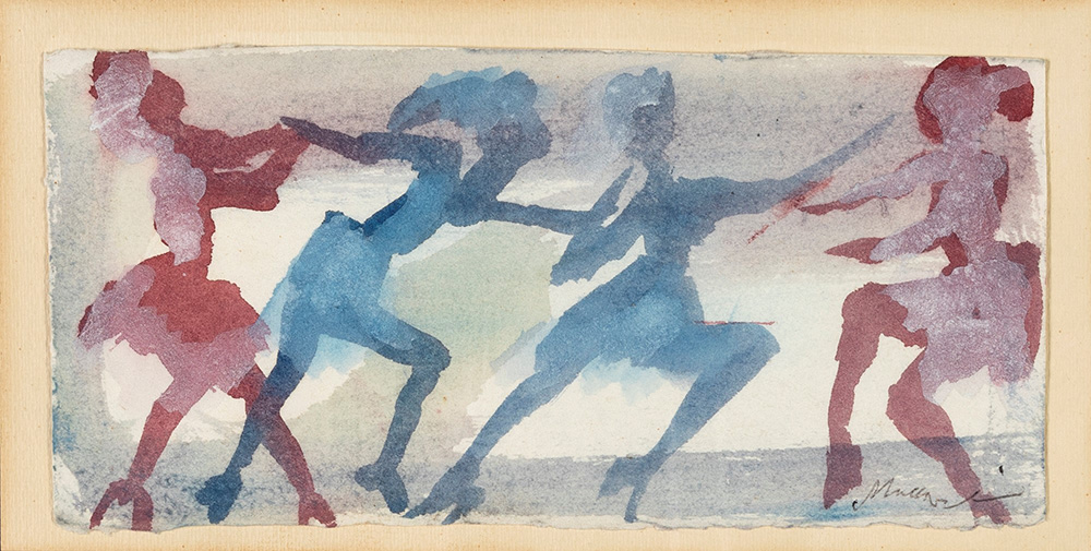 Mino Maccari Siena 1898-Roma 1989, Figure Acquarello su cartoncino cm 10x21,5 Firma sul fronte "Maccari".