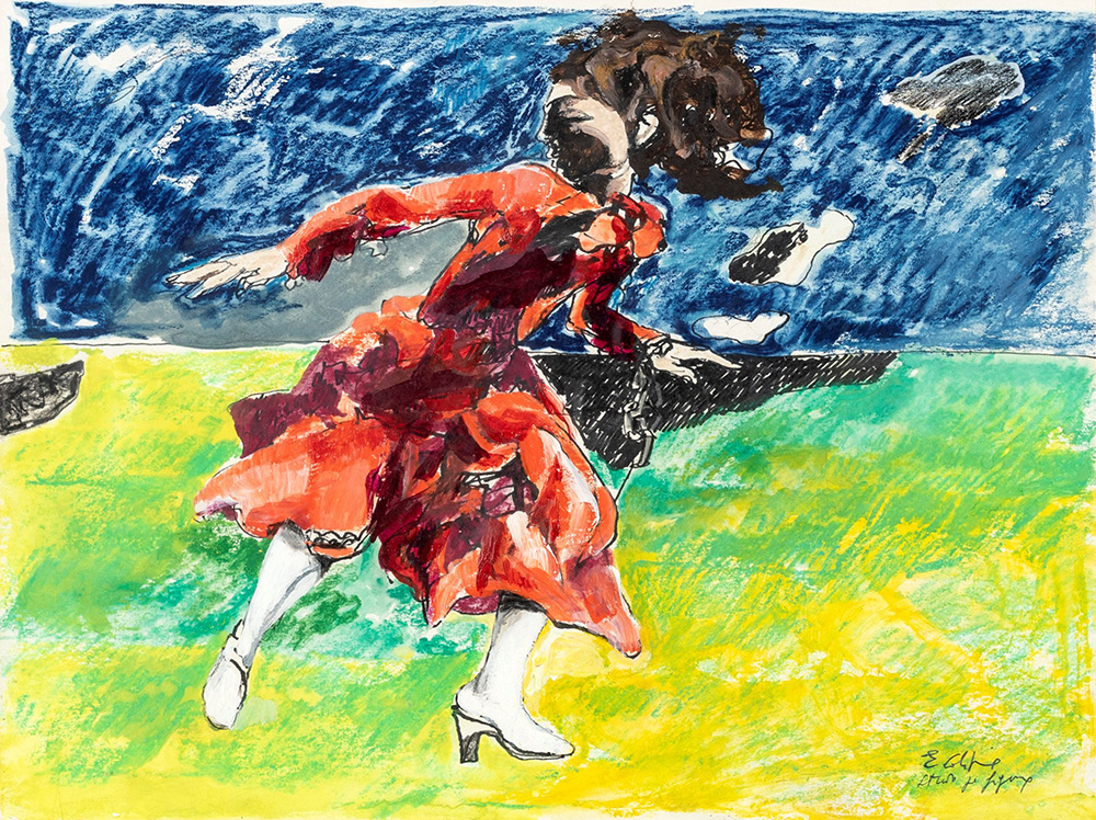 Ennio Calabria Tripoli 1937-0, Studio per figura Primi anni '80 Pennarello, pastello ceroso, acquarello e olio su carta cm 24x32 Sul fronte firma e titolo "E.Calabria - Studio per figura".