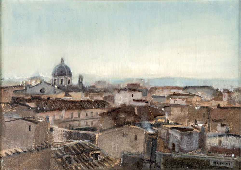 Marcello Muccini Roma 1926-Roma 1978, Paesaggio di Roma Olio su tela cm 50x70 Firma sul fronte "Muccini". Al verso reca etichetta Galleria La Nuova Pesa (Roma).