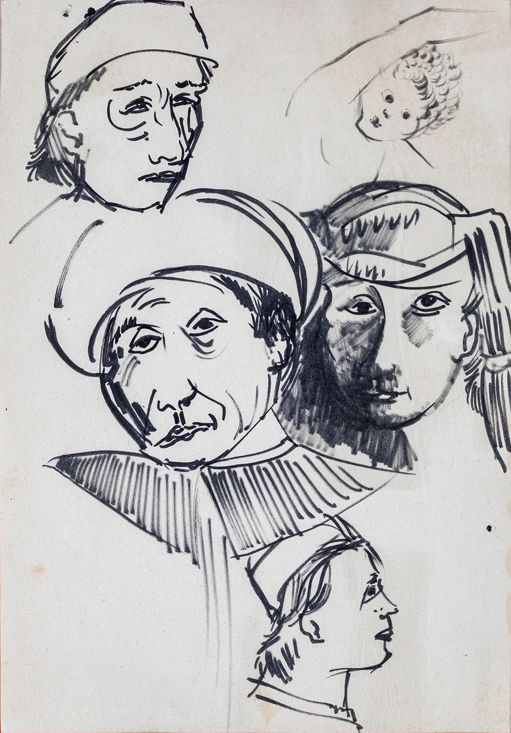 Giovanni Omiccioli Roma 1901-Roma 1975, Studio della scala degli sposi Palazzo Ducale Mantova China su carta cm 30x20 Autentica sul retro del Fratello Armando