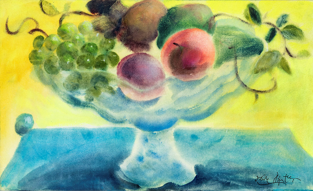 Ercole Pignatelli Lecce 1935, Vaso con frutti Tecnica mista su carta cm 37,5x62,5 Firma sul fronte.