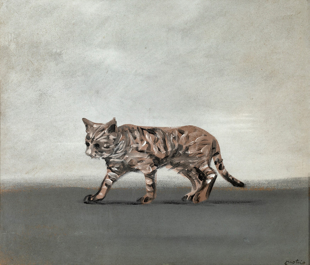 Enotrio Pugliese Enotrio Buenos Aires 1920-Pizzo 1989, Gatto 1985 Olio su compensato cm 70x65 Firma sul fronte "Entorio". Al verso reca timbro dello studio Enotrio, firma e titolo.