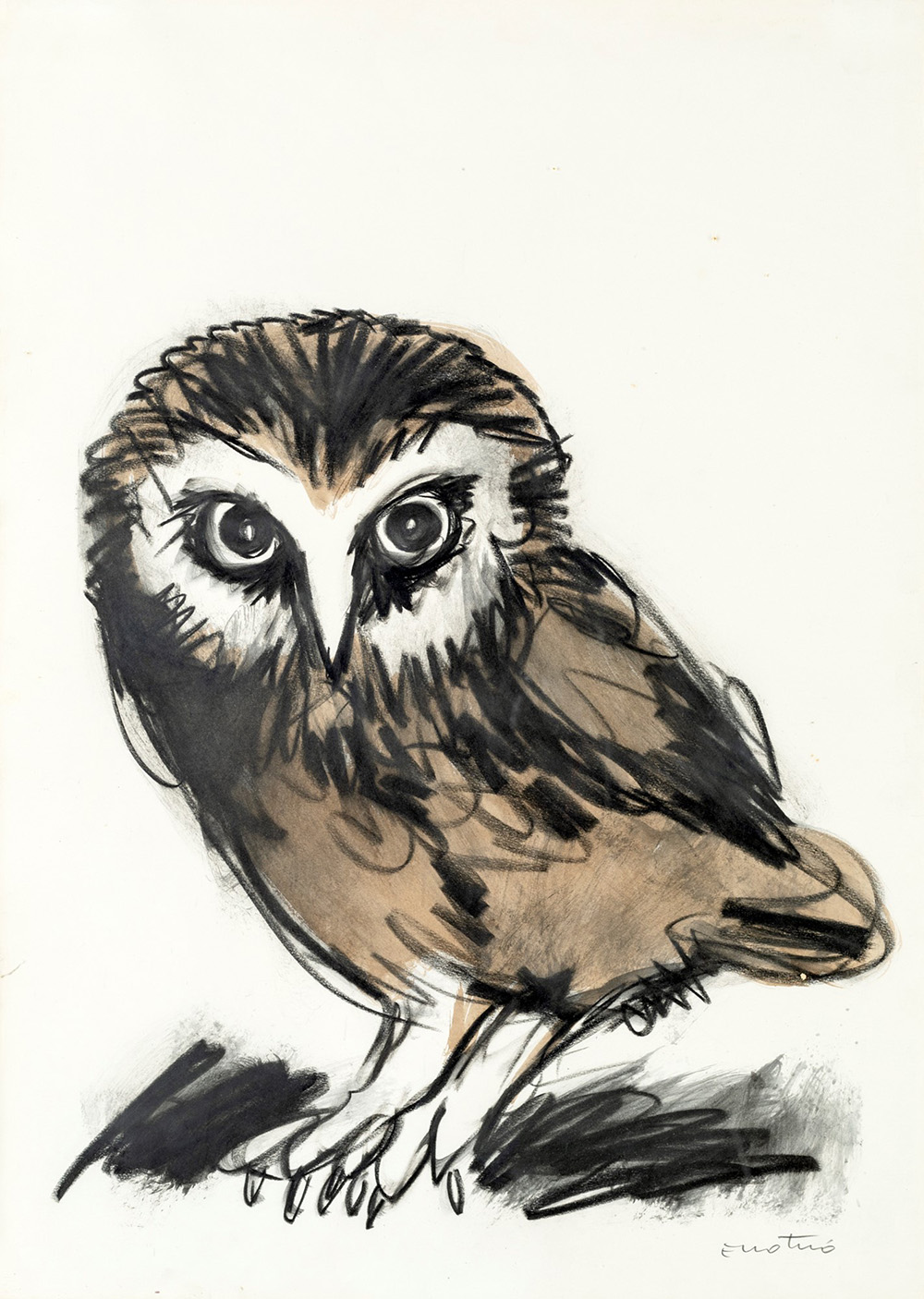 Enotrio Pugliese Enotrio Buenos Aires 1920-Pizzo 1989, Civetta 1985 Olio su cartoncino cm 70x50 Firma sul fronte "Enotrio".