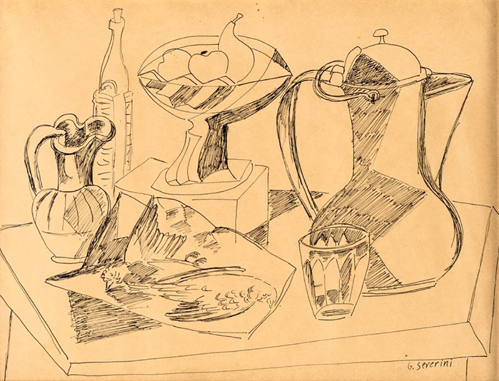 Gino Severini Cortona 1883-Parigi 1966, NATURA MORTA CON BROCCA China su carta cm 21x28 Firma in basso a destra G.Severini