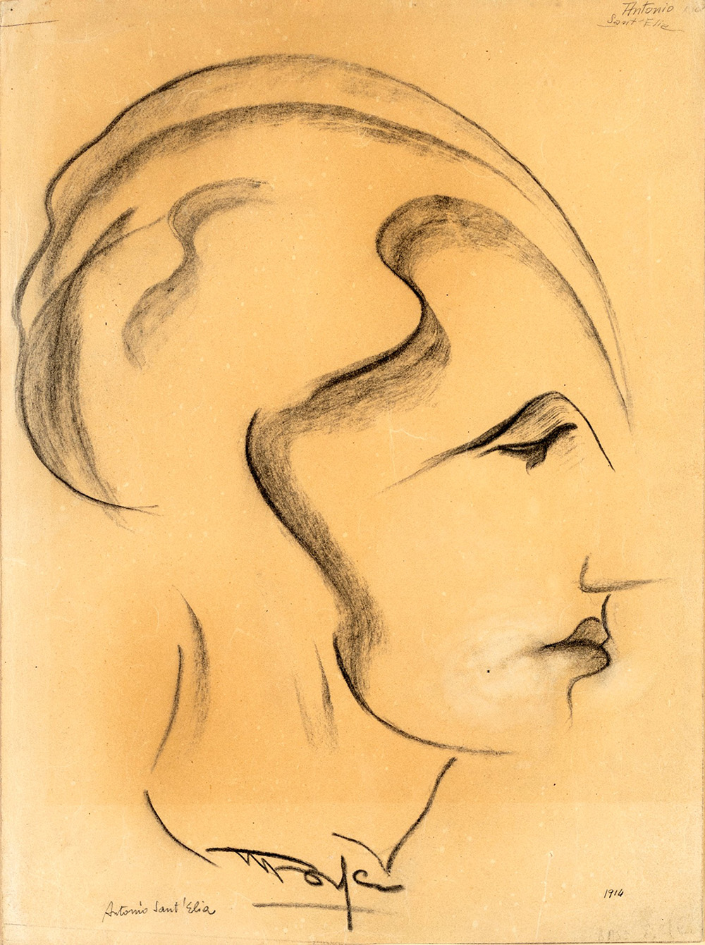 Antonio Marasco Nicastro 1896-Firenze 1975, Ritratto di Antonio Sant'Elia 1914 Carboncino su carta cm 42,5x35 Firma e data sul fronte "Marasco 1914".