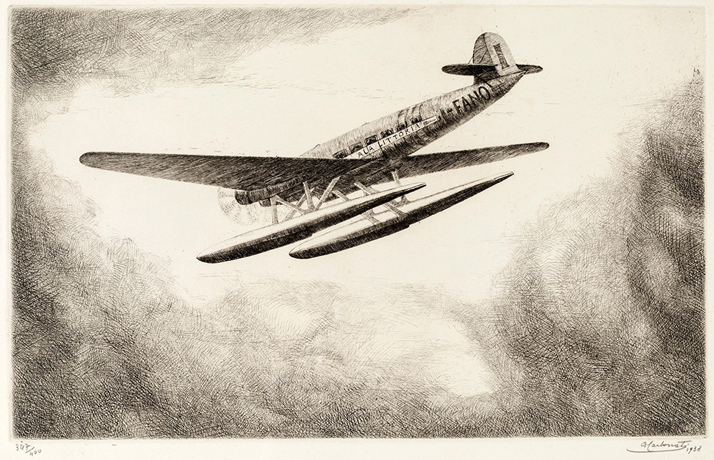 Antonio Carbonati Mantova 1893-Roma 1956, Ala Littoria 1938 Acquaforte cm 35x50 es. 347/400, firma a matita sul fronte "Carbonati 1938".