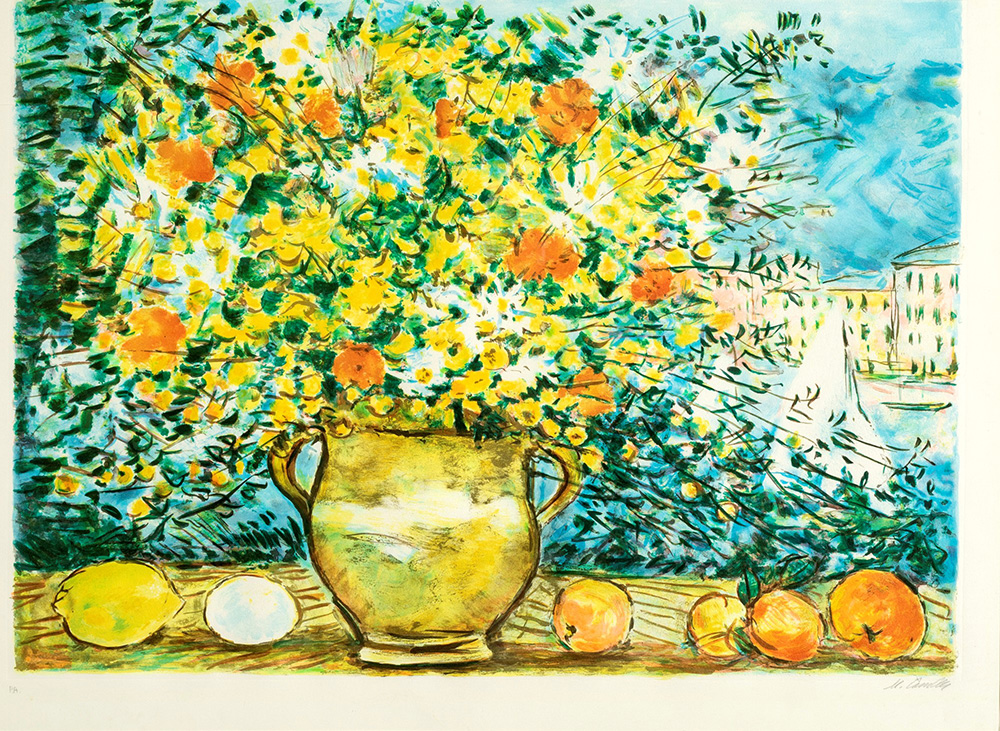 Michele Cascella Ortona 1892-Milano 1989, Natura morta con fiori e frutti Litografia cm 60x80 Firma sul fronte a matita "M.Cascella", es. "P.A.".