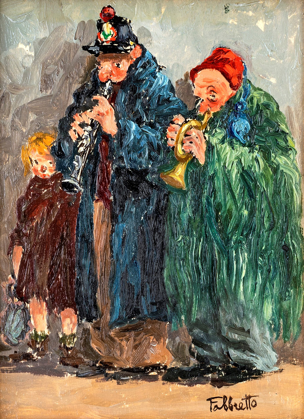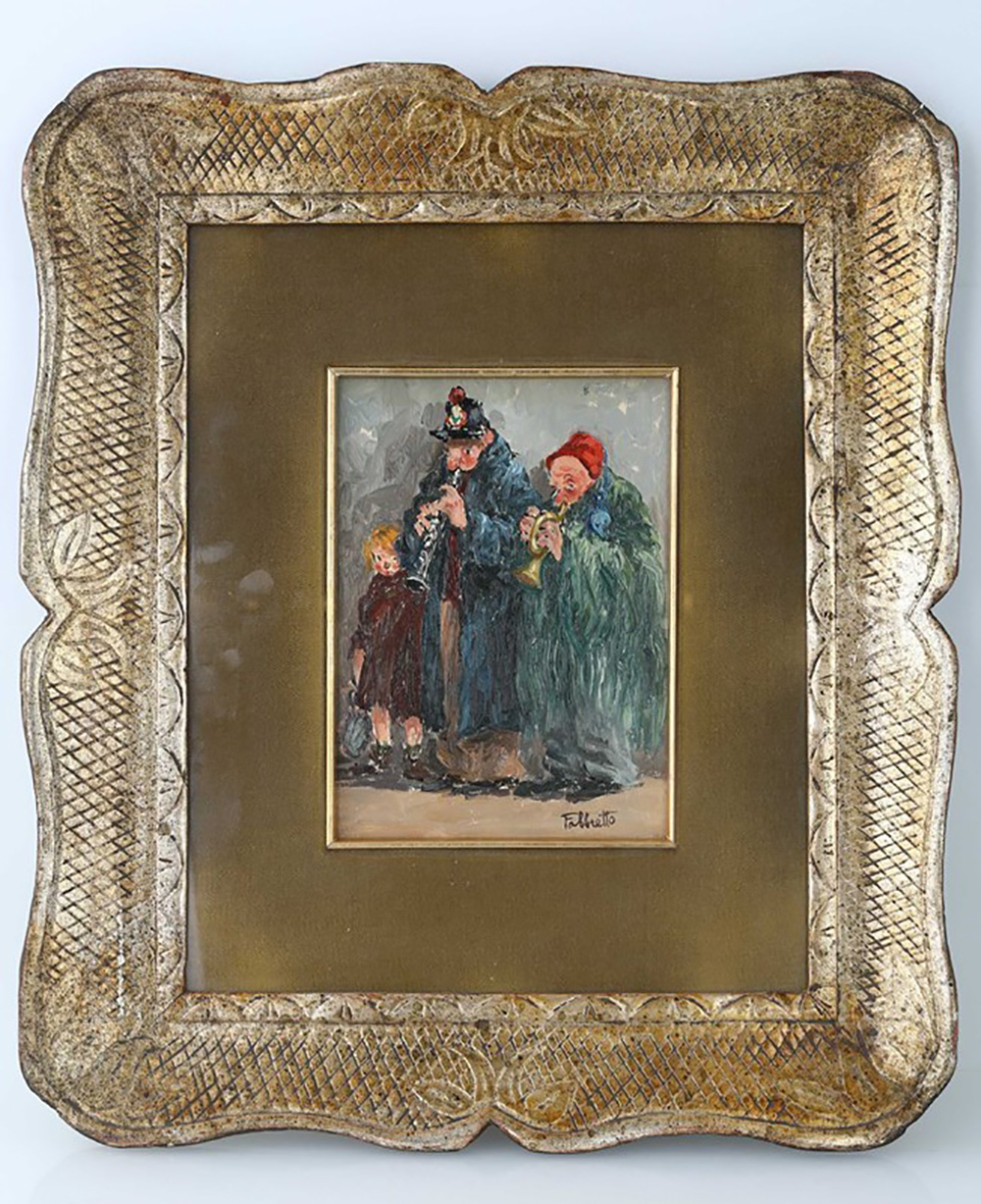 Angelo Urbani del Fabretto 0-0, Figure Olio su tavola cm 18,5x13,5 Firma sul fronte "Fabbretto".