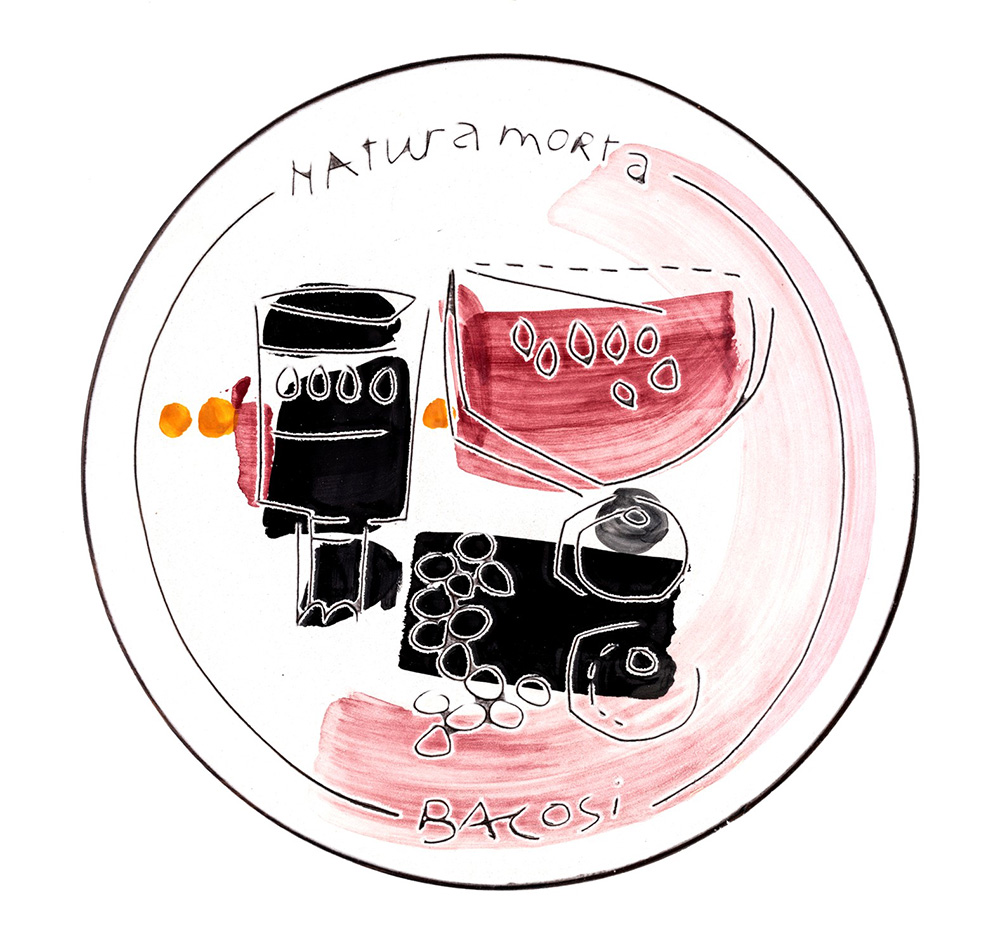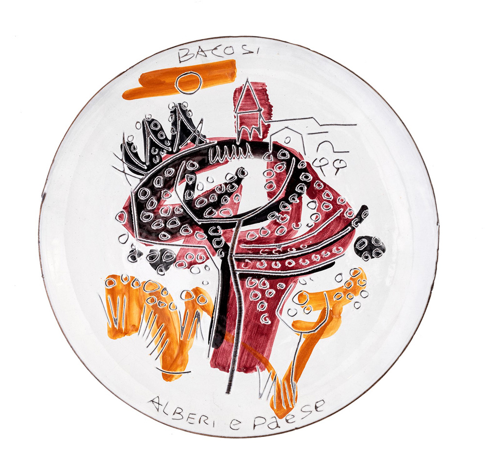 Manlio Bacosi Perugia 1921-Perugia 1998, Lotto di due piatti in ceramica Ceramica A) Alberi e Paese, diametro 36 cm, es. 35/100. B) Natura Morta, diametro 36 cm, es. 63/100