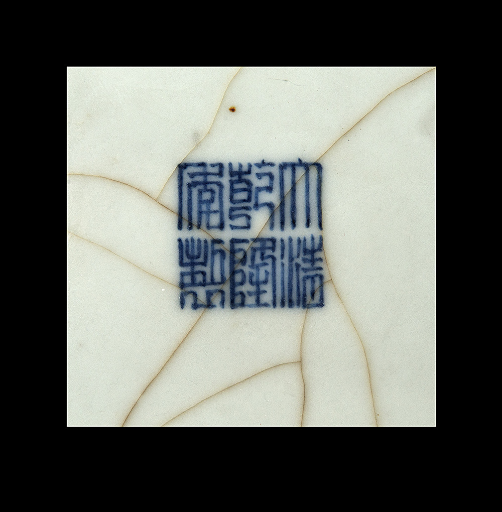 Vaso dalla forma arcaica hu, con invetriatura in stile guan, marchio apocrifo Qianlong