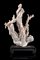 Ramo in corallo rosa chiaro scolpito con dame e strumenti musicali, con base in legno (lievi difetti)