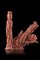 A red coral carving of a standing lady flanked by a peacock perched on a branch (defects)