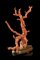 Grande ramo in corallo scolpito con eleganti dame con strumenti musicali e rami in fiore, con base in legno
