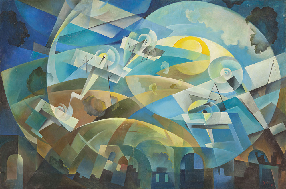 Tullio Crali (Igalo, Dalmatien/Dalmazia 1910 – Mailand/Milano 2000) Volo al tramonto, 1930;Olio su tela, 80 x 120 cm