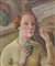 Guglielmo Janni (Rom/Roma 1892 – 1958) Ritratto di pittrice (Pasquarosa Marcelli?);Olio su tavola, 59 x 49 cm, al verso vasi di fioriFirmaProvenienza: collezione privata