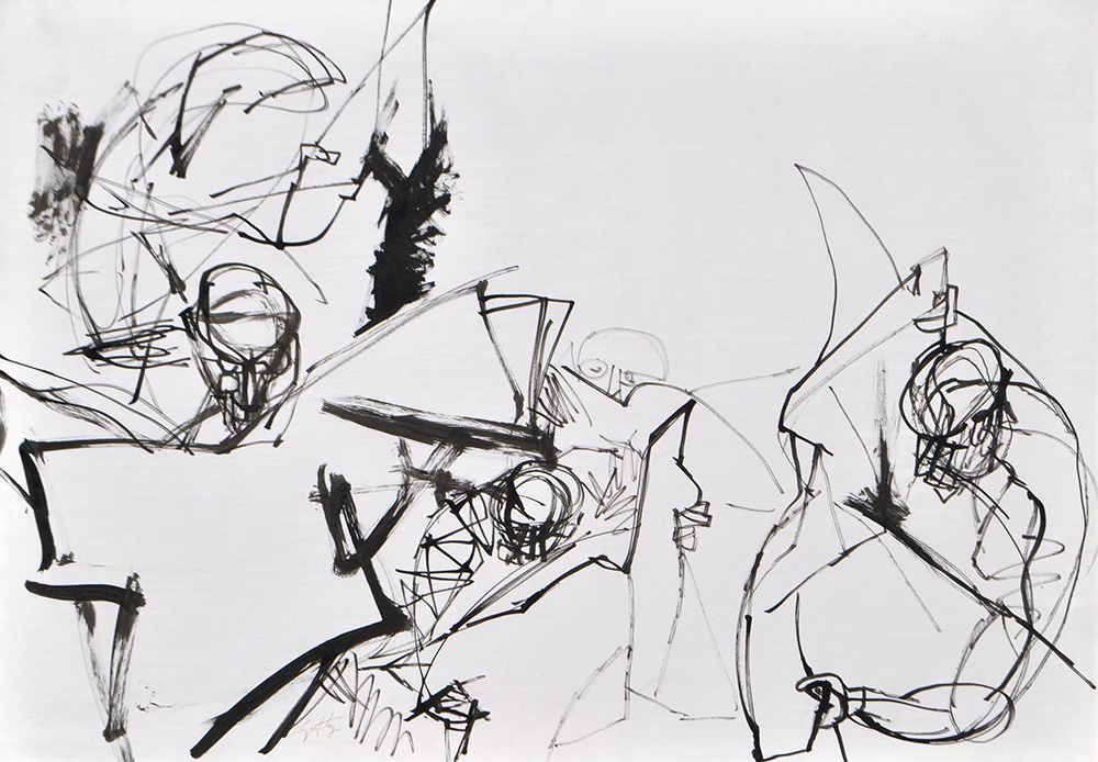 Renato Guttuso (Bagheria 1911 – Rom/Roma 1987) Lettori di giornali;China su carta applicata su tela, 70 x 100 cmFirmaL’opera è accompagnata da autentica su fotografia dell’autoreProvenienza: collezione privata
