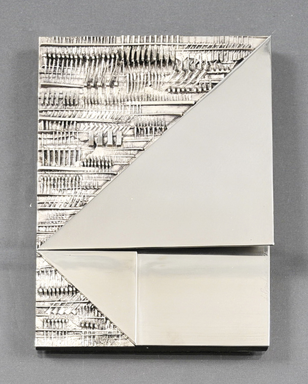 Arnaldo Pomodoro Senza titolo, 1974;Acciaio e bronzo argentato, 25 x 17,5 cm,...