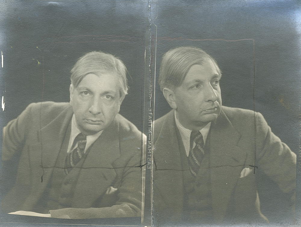 Man Ray (Philadelphia/Filadelfia 1890 – Paris/Parigi 1976) Doppio ritratto di Giorgio De Chirico, ca 1930;Fotografia ai sali d’argento con riquadro a penna eseguito dall'artista, 9,1 x 12,1 cm, doppio riquadro a penna probabilmente dello stesso artista per delimitarne la .superficie di stampa, al retro timbro “Man Ray rue Campagne Premierè”