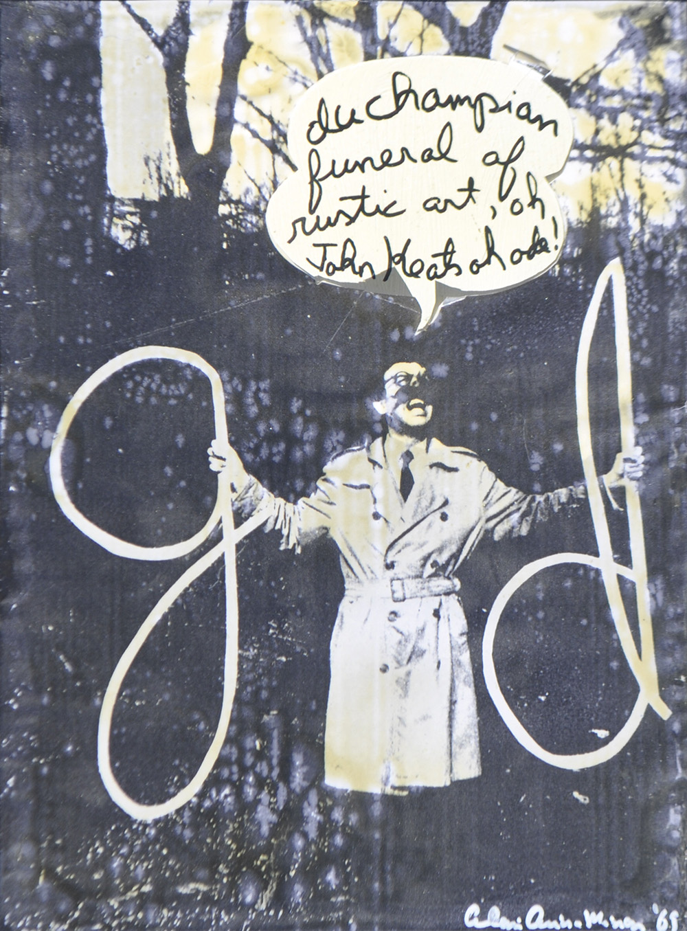 Alain Arias Misson (Brüssel/Bruxelles 1936) Senza titolo, 1969; Duchampian funeral of rustic art, oh John Keats oh ode! „