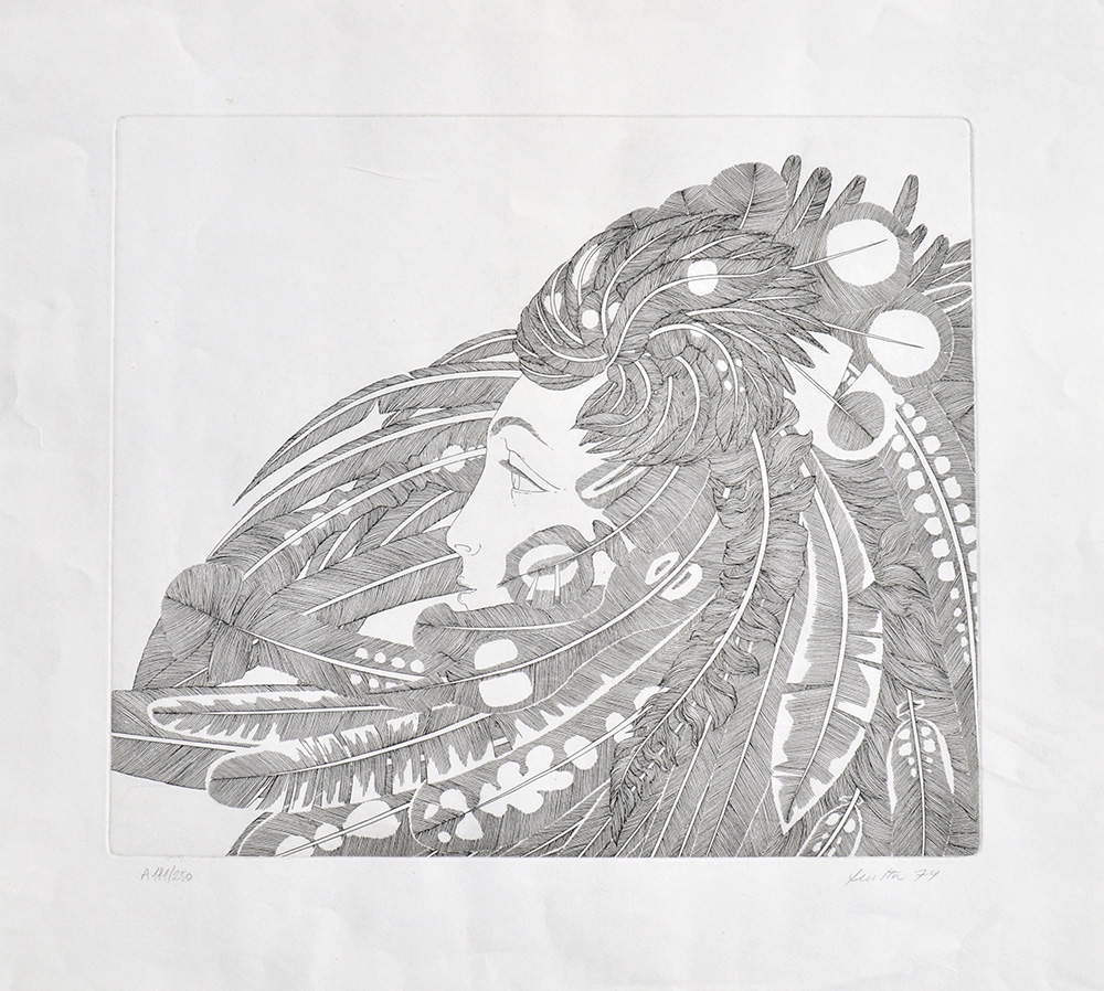 Wolfgang Hutter “Federfrau” da Il flauto magico, 1974;Acquaforte, 37,5 x 44 cm (lastra)