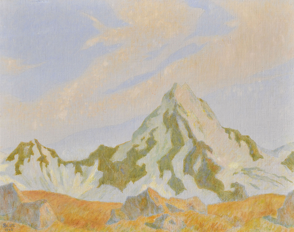 Rudolf Glotz (Wien/Vienna 1879 – Innsbruck 1958), Monte Zebrù nel Gruppo Ortles-Cevedale, 1946;Tempera su tela su cartone, 42,5 x 52,5 cm, in cornice