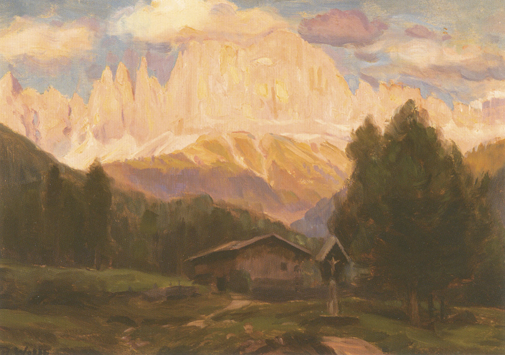 Richard Wolff (Esseg 1880 – Bozen/Bolzano 1964), Catinaccio rosseggiante;Olio su cartone, 31 x 43 cm, minimali mancanze di colore