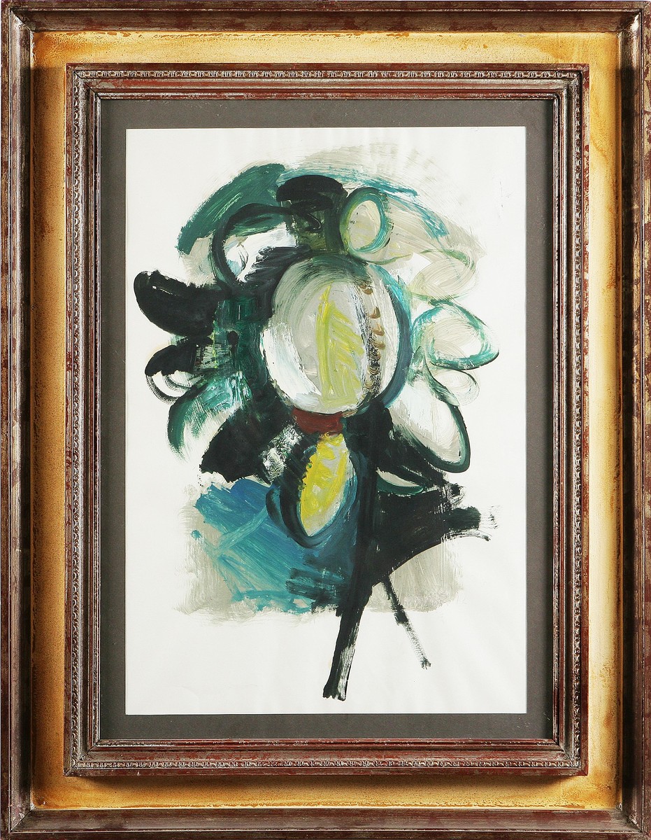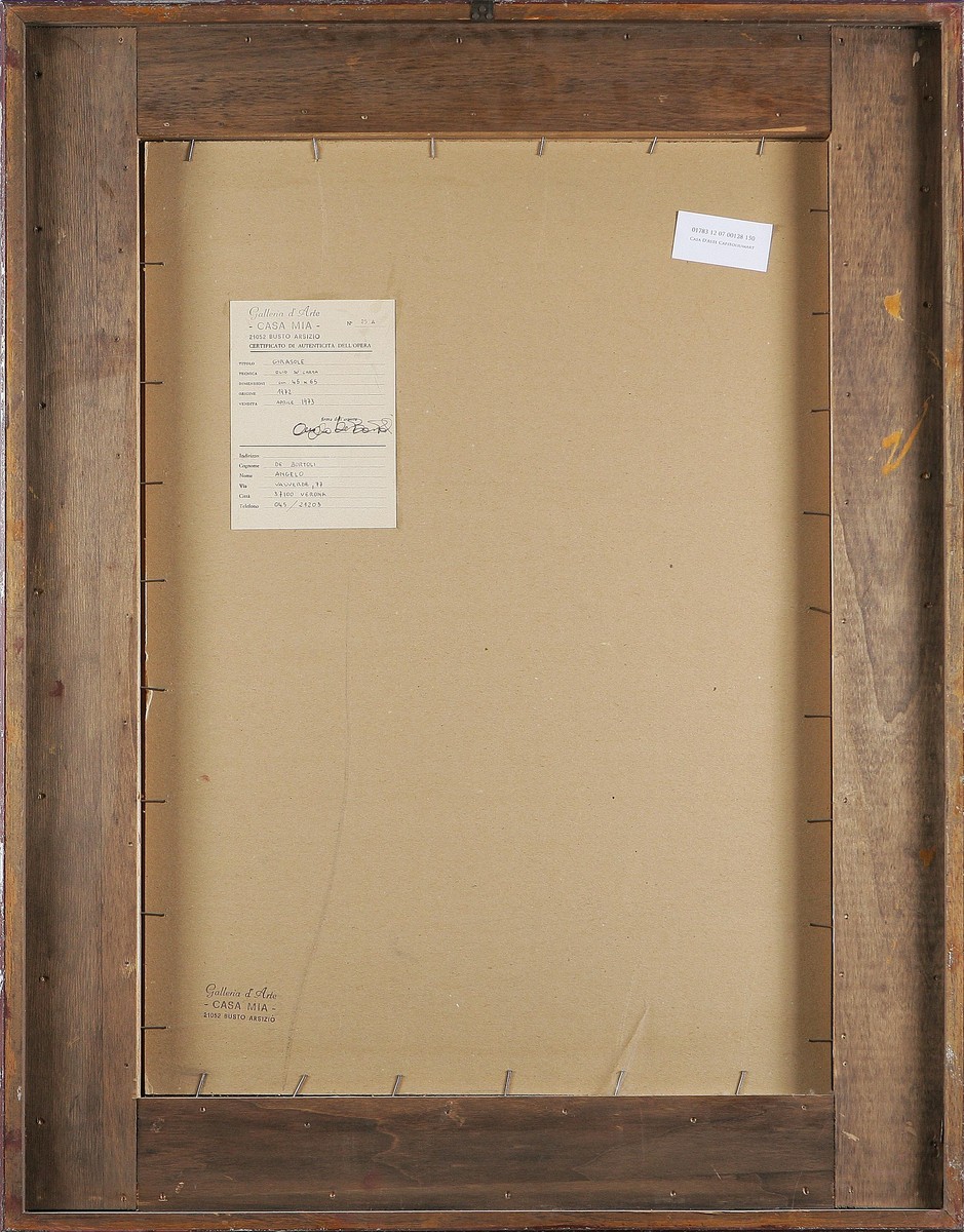 DE BORTOLI ANGELO (1934 - 1999) Girasole. 1972. Olio su carta. Cm 43x63,5. Al retro cartilgio descrittivo della galleria d'arte casa mia, Busto Arsizio, con firma dell'artista per autentica. Cornice presente.