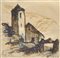 Josef Mahlknecht (Bozen/Bolzano 1886 – Meran/Merano 1953), Cappella in Val Venosta, 1937;China, gessetti colorati, 12,6 x 13,2 cm