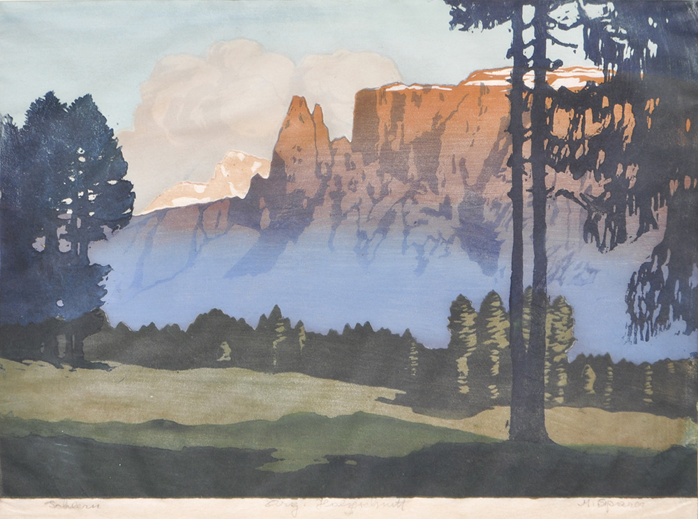 Max Sparer (Söll, Tramin/Termeno 1886 – Bozen/Bolzano 1968), Sciliar;Xilografia a colori, 33,3 x 49 cm (immagine), in cornice