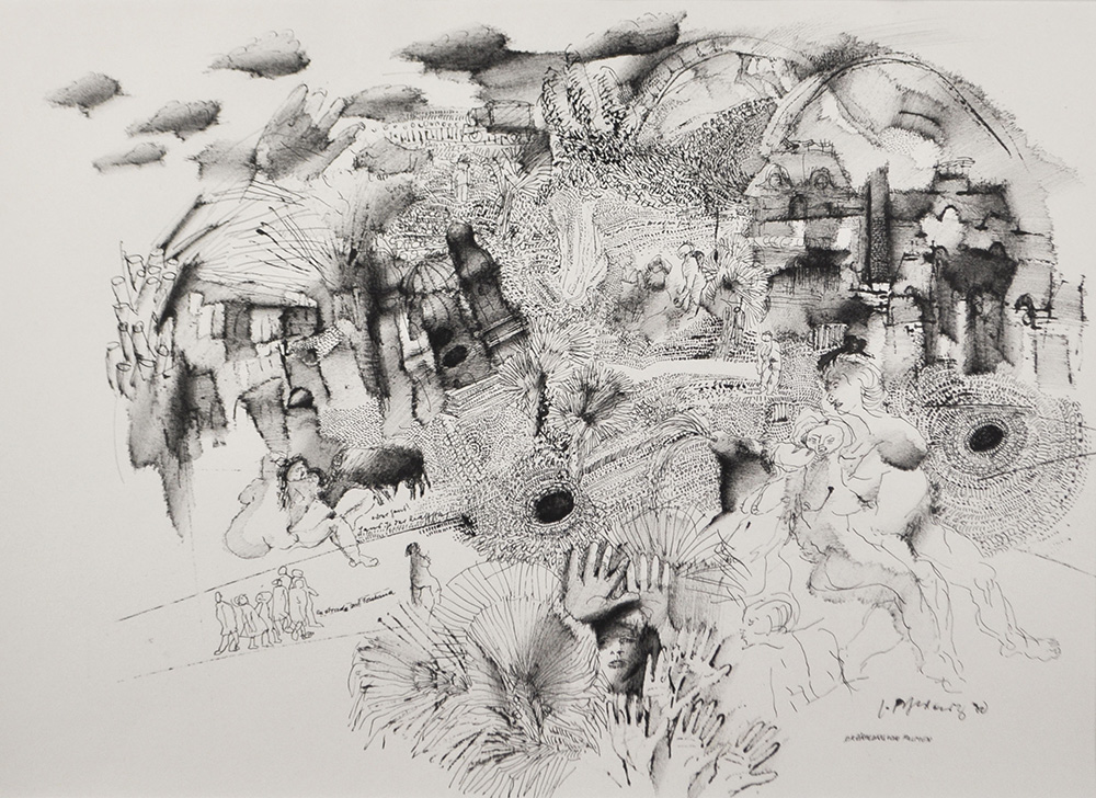 Josef Schwarz (Brandenberg 1917 – Telfs 2013), Racconto di palme;China, 34,5 x 47,5 cm, in cornice