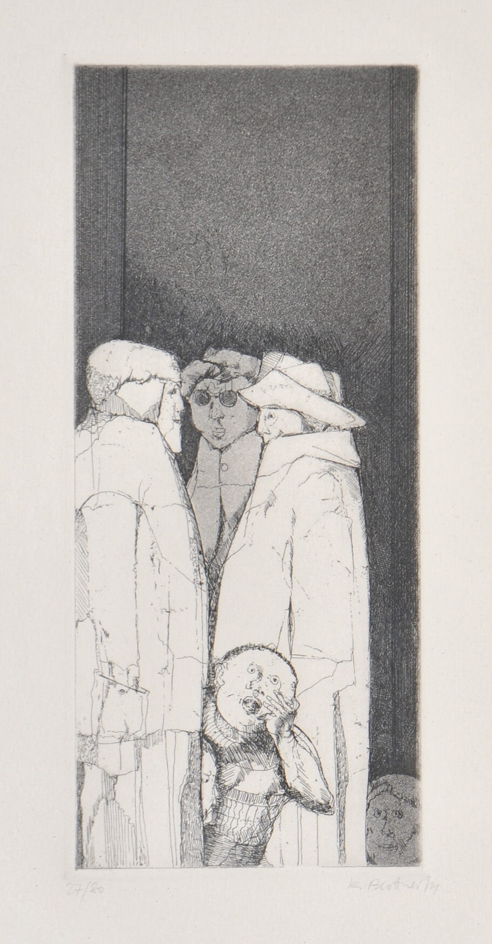 Karl Plattner (Mals/Malles 1919 – Mailand/Milano 1986), Per la strada, 1968;Acquaforte, 19,5 x 8,5 cm (lastra), in cornice