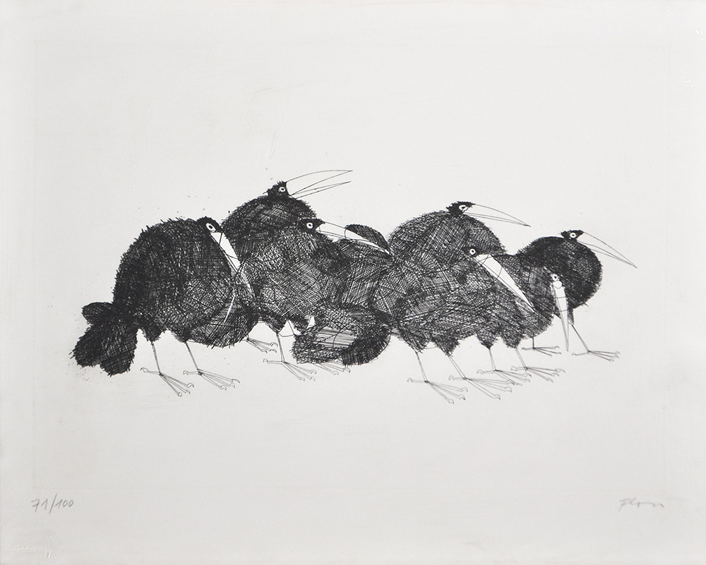 Lot 490 | Paul Flora Glurns/Glorenza 1922 – Innsbruck 2003), Corvi;Acquaforte, 24,5 x...