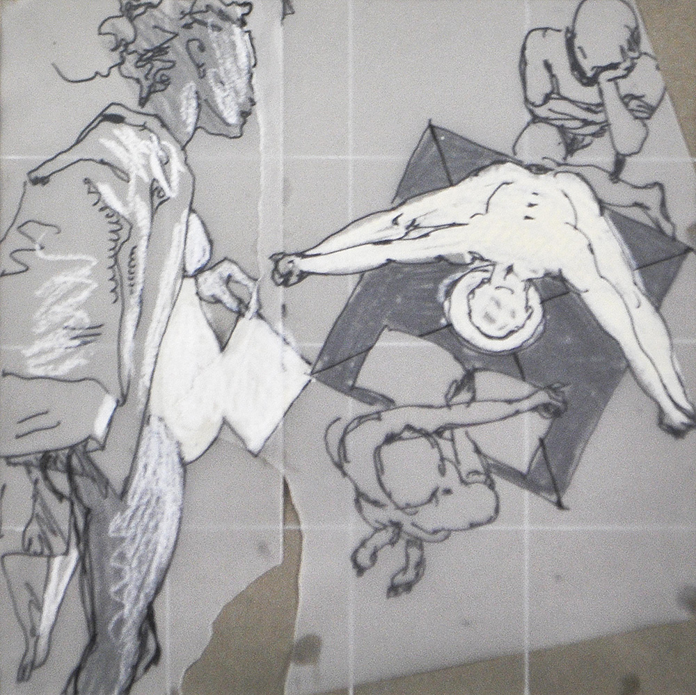 Franz Mölk (* Innsbruck 1947), Vita quotidiana;Collage, china, tempera, gessetti, 20 x 20 cm