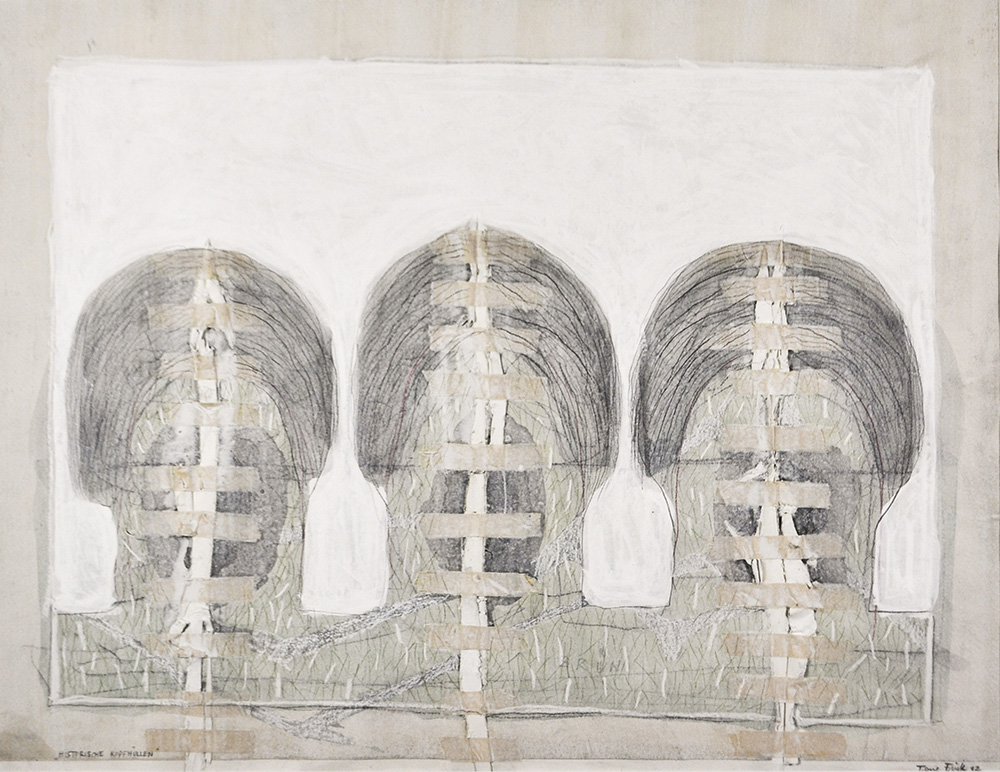 Tone Fink (*Schwarzenberg, Vorarlberg 1944), Cappelli storici, 1982;Tecnica mista su carta, 49 x 63,5 cm,