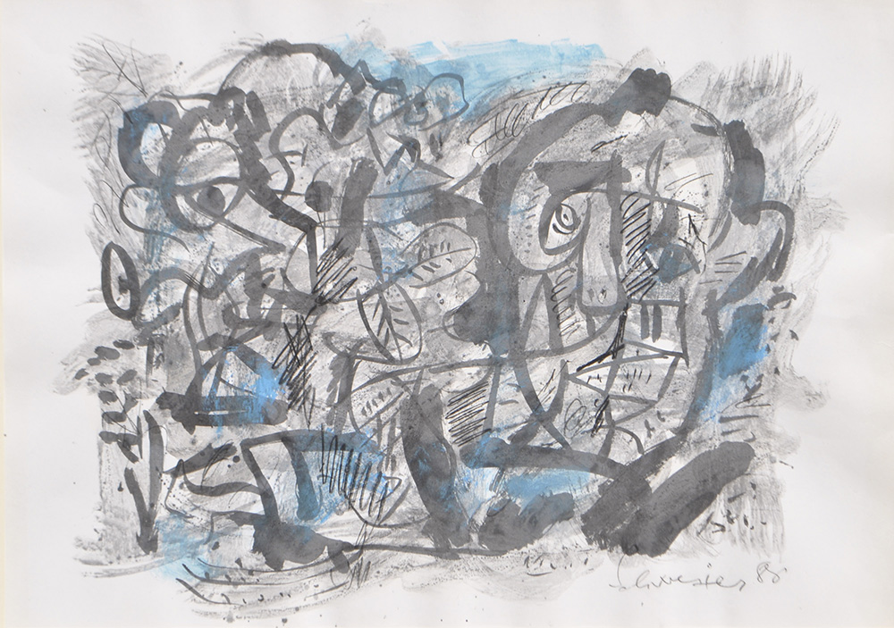 Riccardo Schweizer ((Mezzano, Primiero 1925 – Casez, Nonstal/Val di Non 2004), Insiemi, 1988;Tecnica mista su cartoncino, 50 x 70 cm,