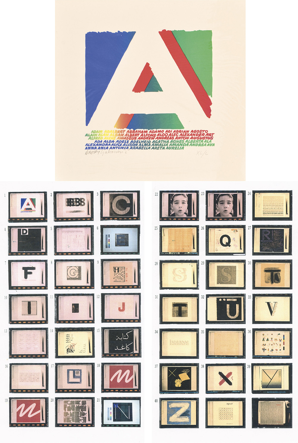 Christine Ljubanovic (* Zams 1939), Alphabete & Zeichen, Lettern/Länder 1983-1993;(Alphabets & signs, letters/lands 1983-1993)