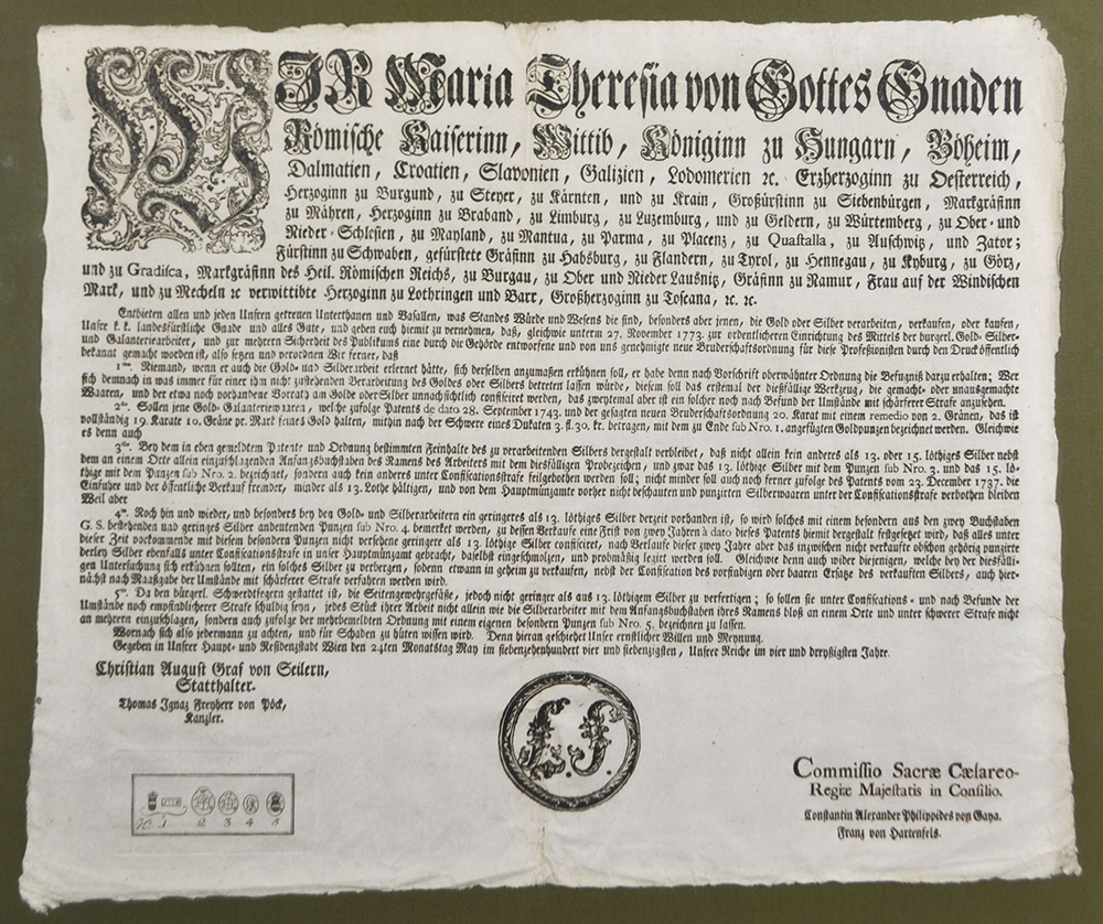 - (* Zams 1939), Edikt Kaiserin Maria Theresia bzgl. des Gold- und Silberhandels, 1774;Druck, 38,5 x 45 cm
