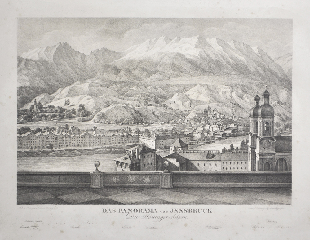 Rehberg/Schweighofer , Panorama di Innsbruck;Litografia, 47,5 x 68,5 cm