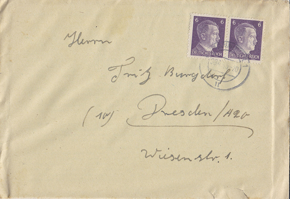 Busta con francobolli falsi di Hitler da 6 Pfg., timbro