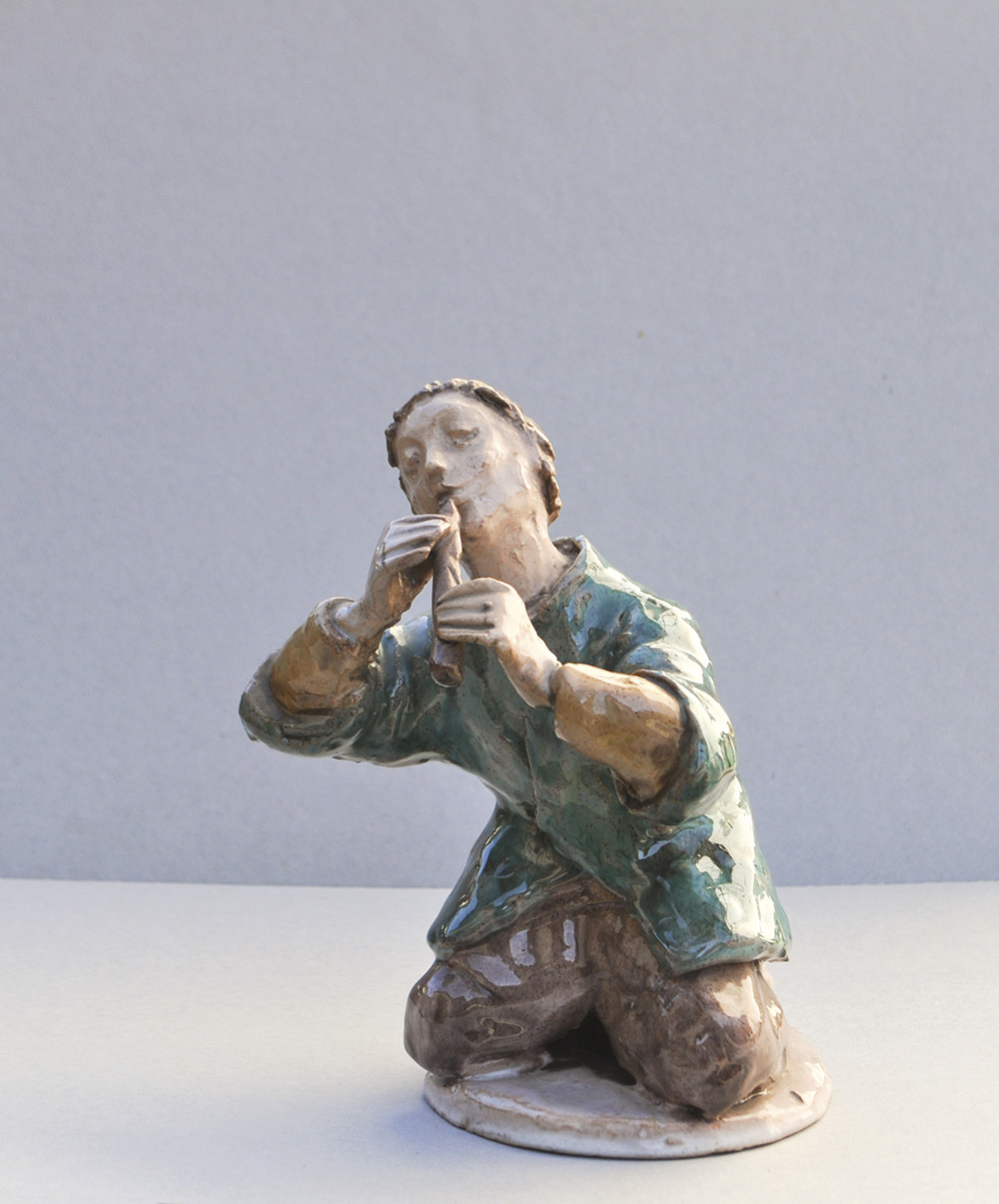 Maria Delago (St. Leonhard 1902 – Brixen/ 1979), Flautista;Ceramica smaltata, altezza 19 cm