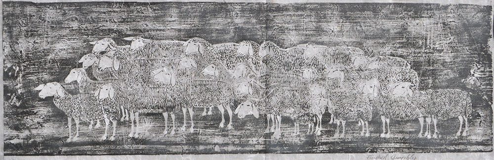 Friedrich Gurschler (*Schnals/Senales 1923), Gregge di pecore;Xilografia,...