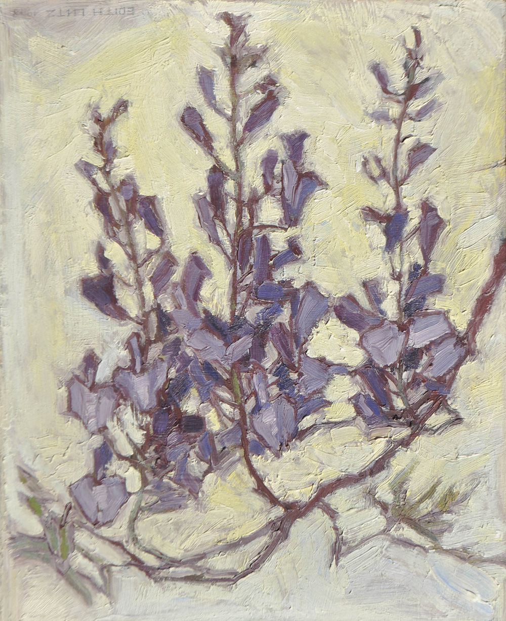 Edith Lutz-Romani (Kufstein 1894 – Tramin/Termeno 1983), Glicine, 1948;Olio su cartone, 29,5 x 24 cm, in cornice